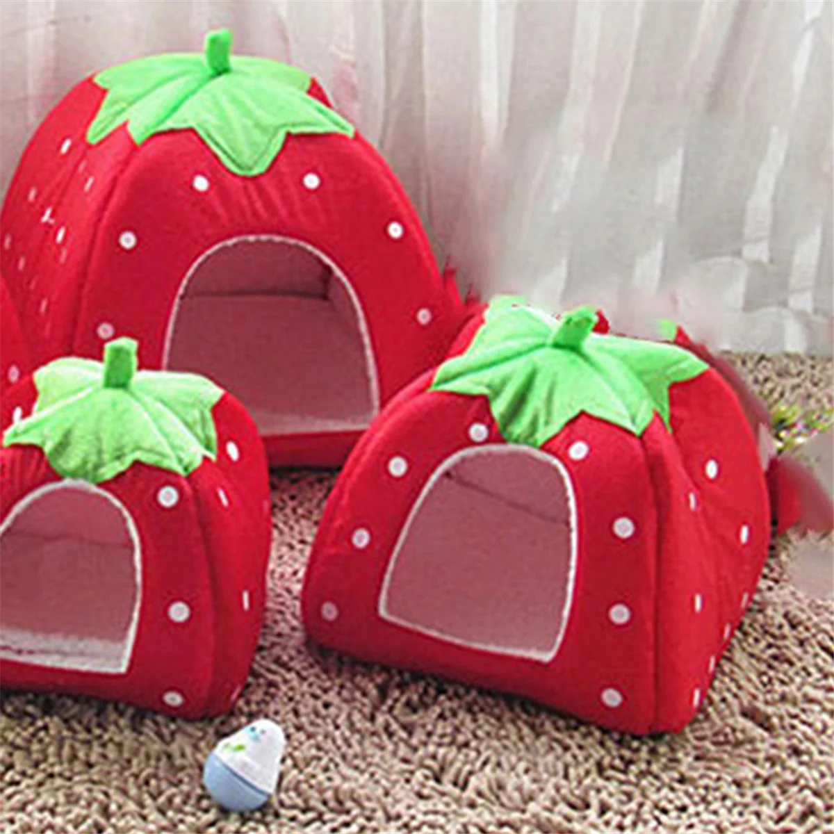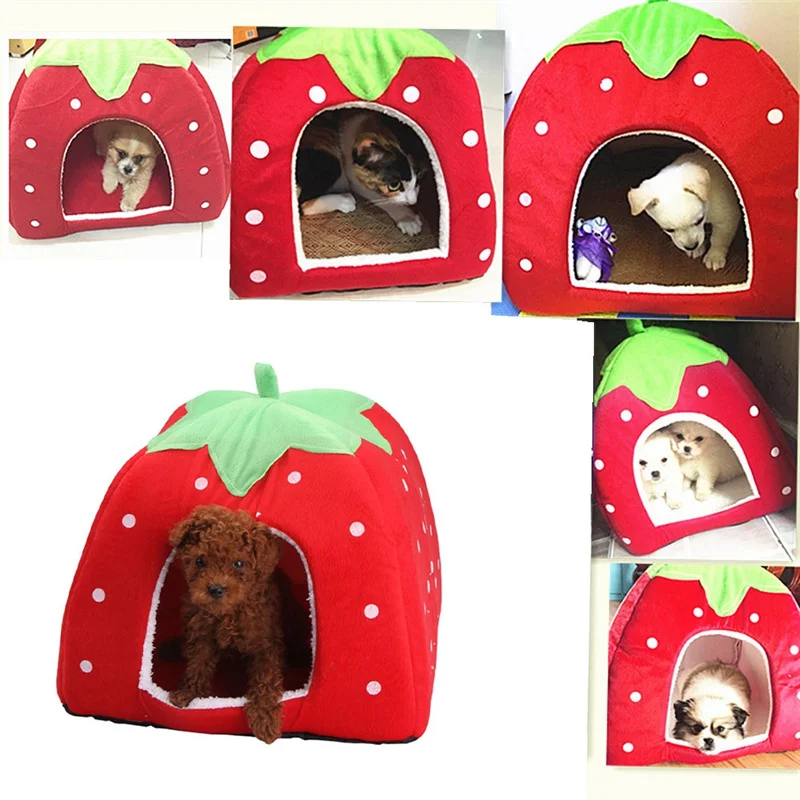 ABKJ-Dog Kennel Dog Fashion Mat Basket Soft Strawberry Pet Dog Cat House Pet Tent Dog House Small Dog Kitten Bed Cat House