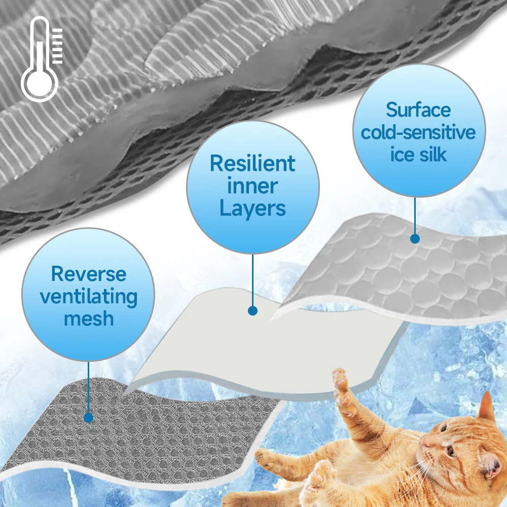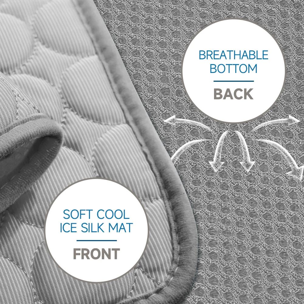 - Ice Silk Cooling Technology: The mat is made of ice silk fabric, which has excellent cooling properties. It absorbs and dissipates heat, offering a refreshing sensation to help lower your pet's body temperature.