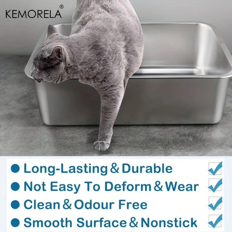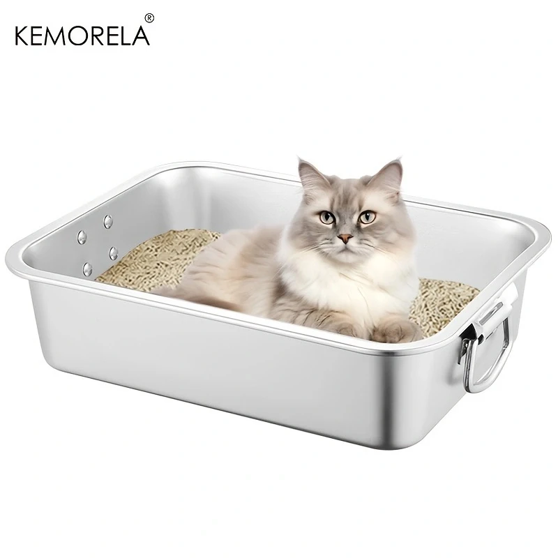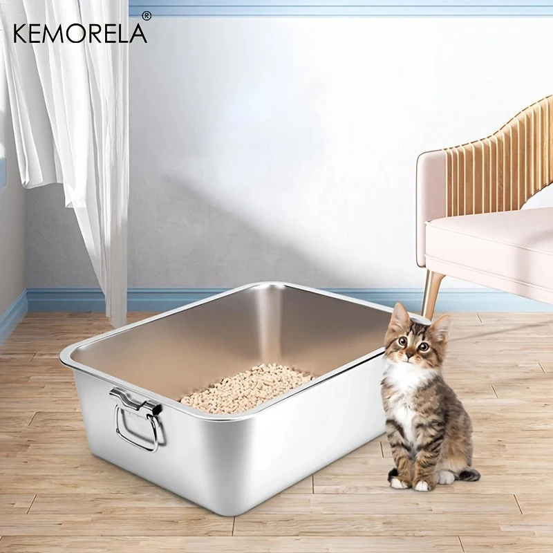 Large Litter Tray With Handles Durable Stainless Steel Litter Box Spacious Low Entry Design For Easy Access To Pet Accessories