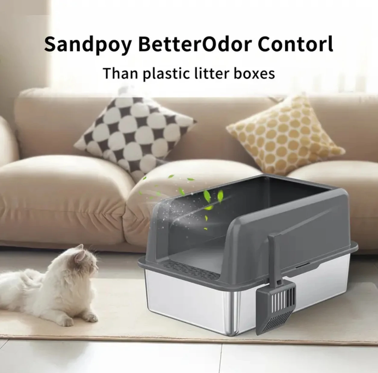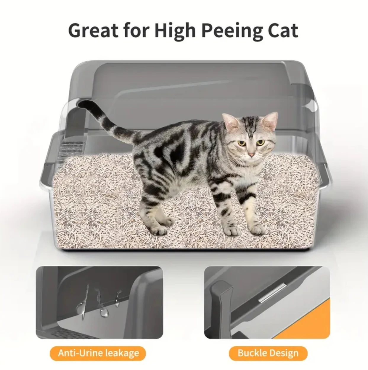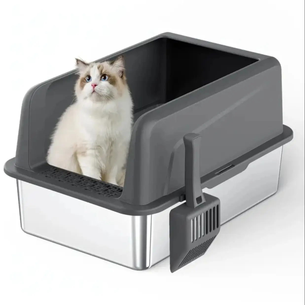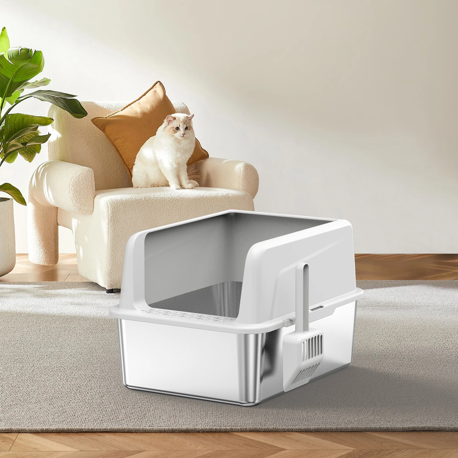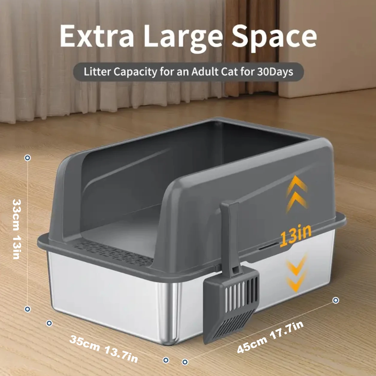 Stainless Steel Litter Box,XL Metal Litter Box with Lid,14”High Side Cat Litter Box for Big Cats and Kittens,Extra Large Litter